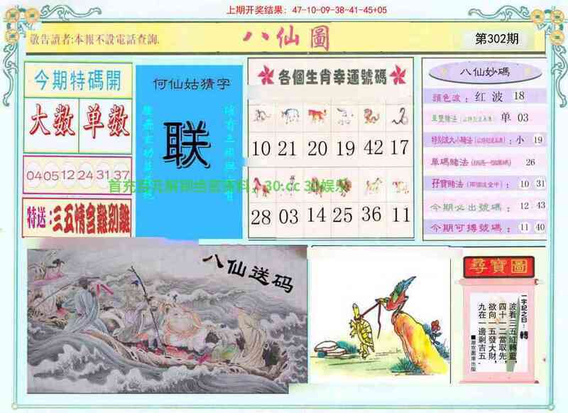 | 302期(澳门醉八仙殺肖)《兔肖》 |