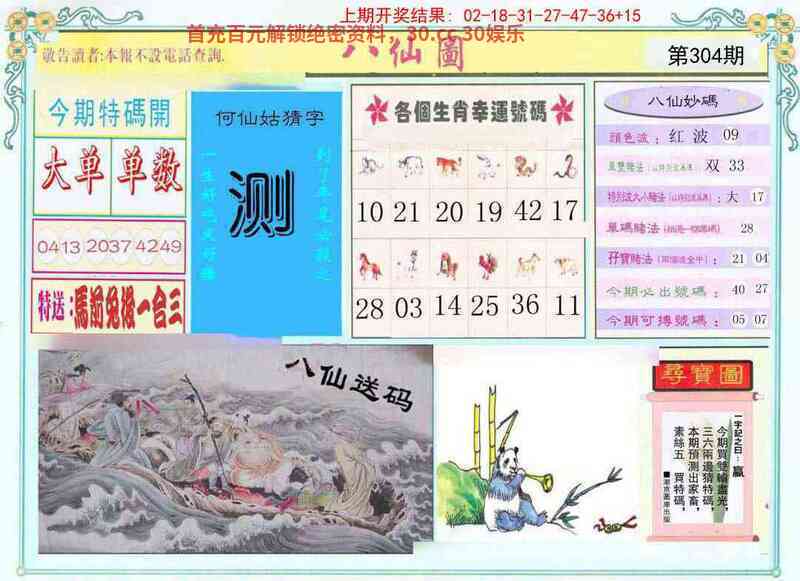 | 302期(澳门醉八仙殺尾)《二尾》 |